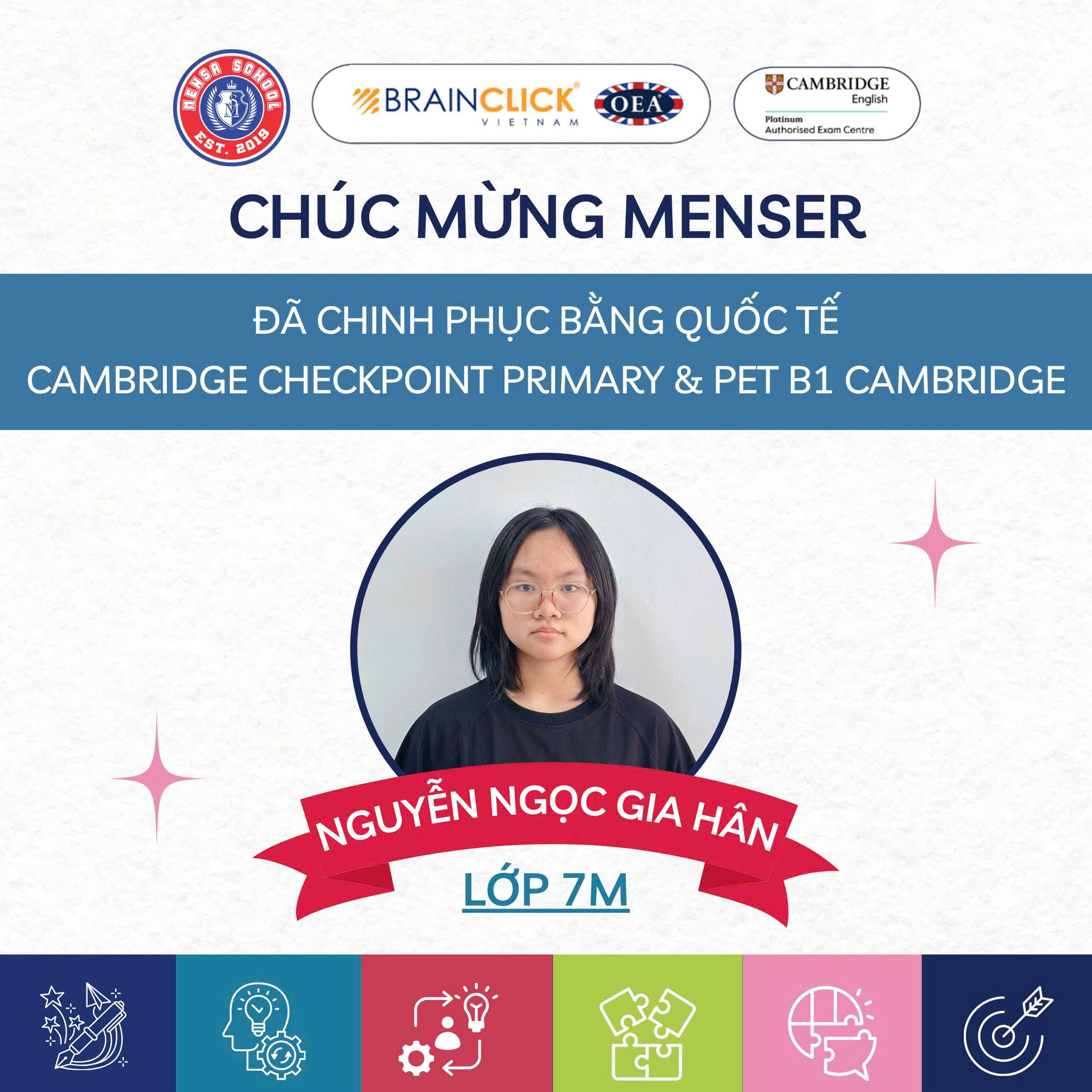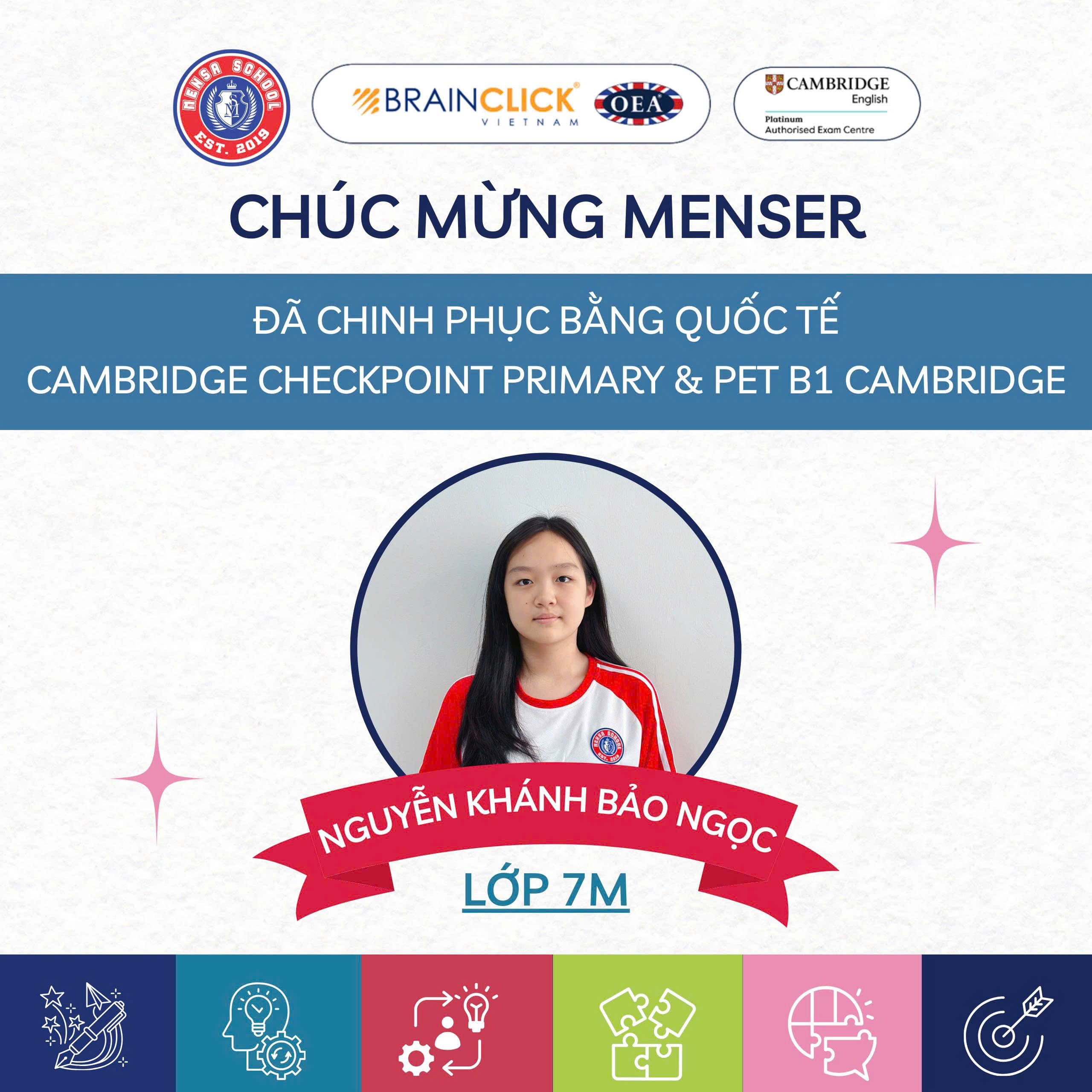 DẤU ẤN TỰ HÀO – HỌC SINH LỚP 6, 7 MENSA ĐÃ CHINH PHỤC BẰNG QUỐC TẾ CAMBRIDGE CHECKPOINT PRIMARY & PET B1 CAMBRIDGE