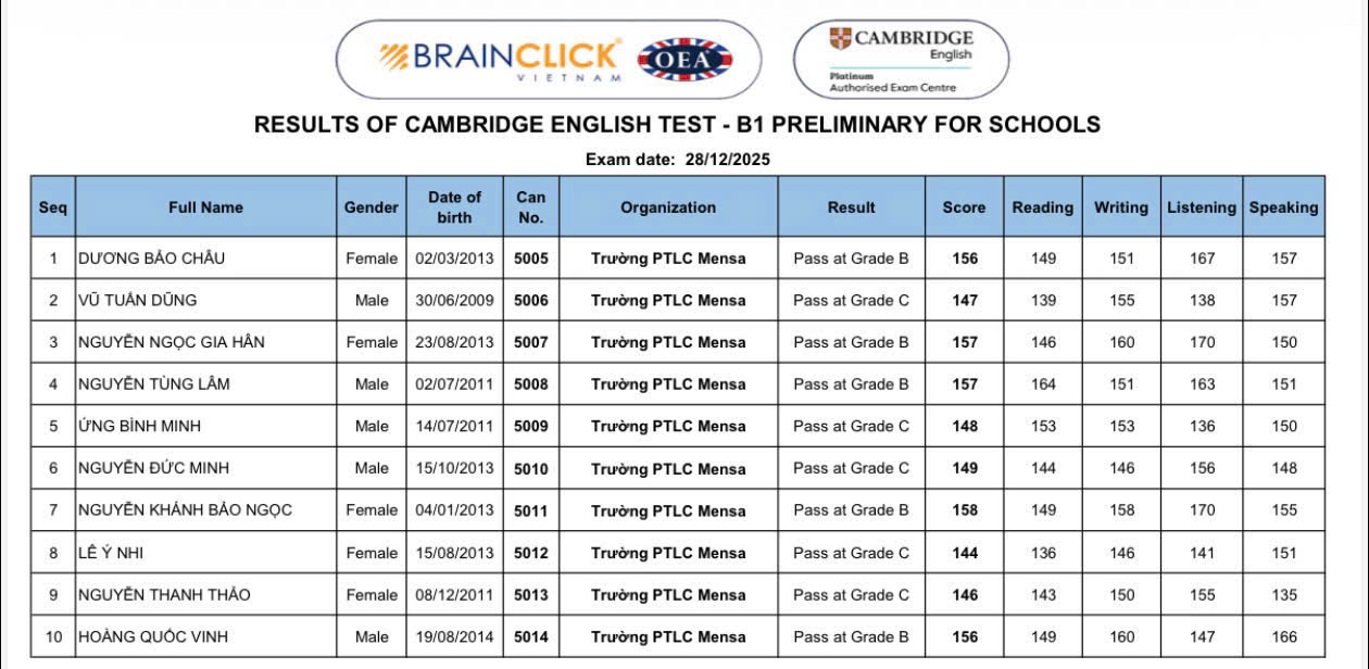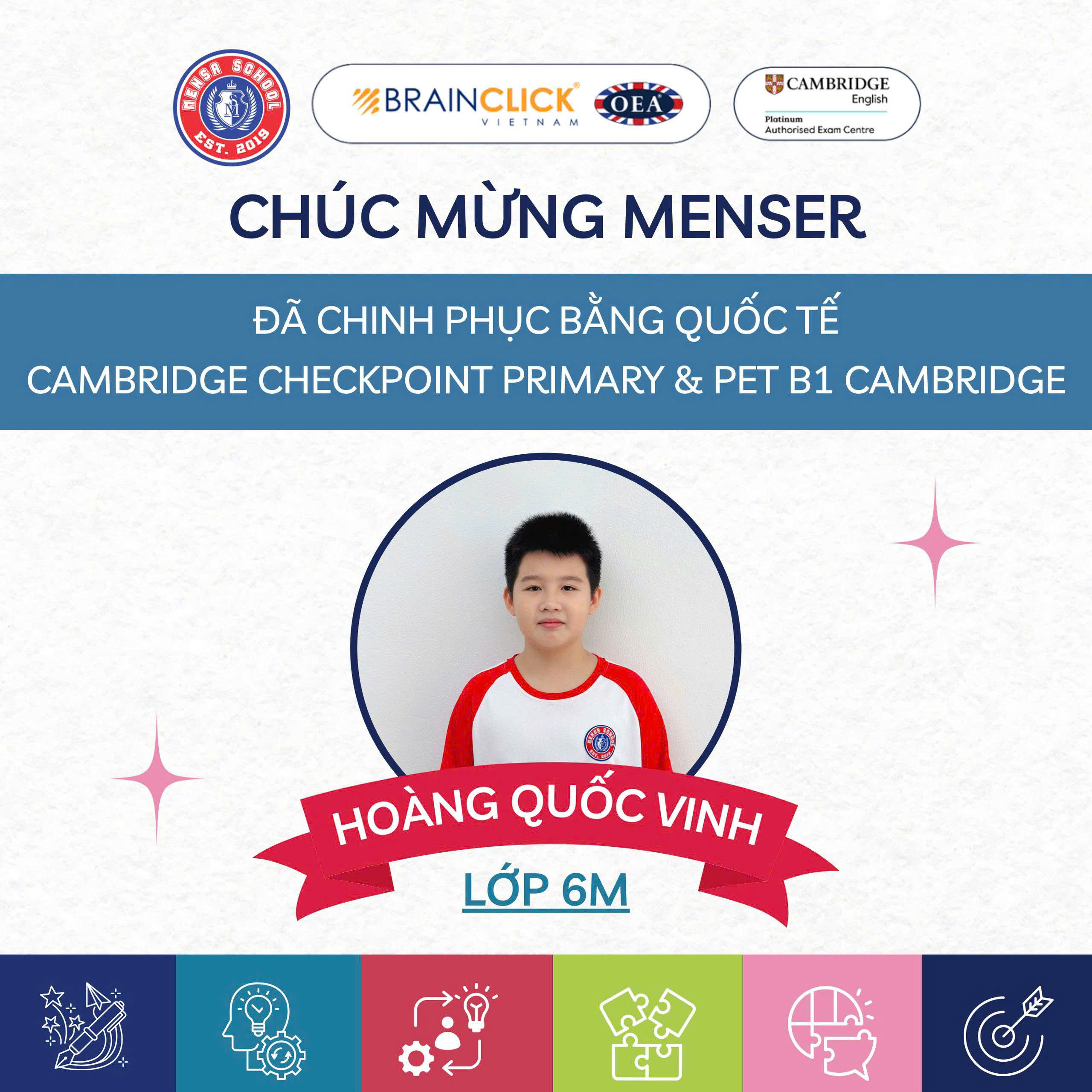 🎉Việc đồng thời chinh phục Cambridge Checkpoint Primary và PET B1 CAMBRIDGE không chỉ thể hiện nền tảng học thuật vững chắc, mà còn khẳng định năng lực tiếng Anh thực chất, giúp học sinh Mensa sẵn sàng tiếp cận các chương trình học tập quốc tế ở những cấp độ cao hơn.