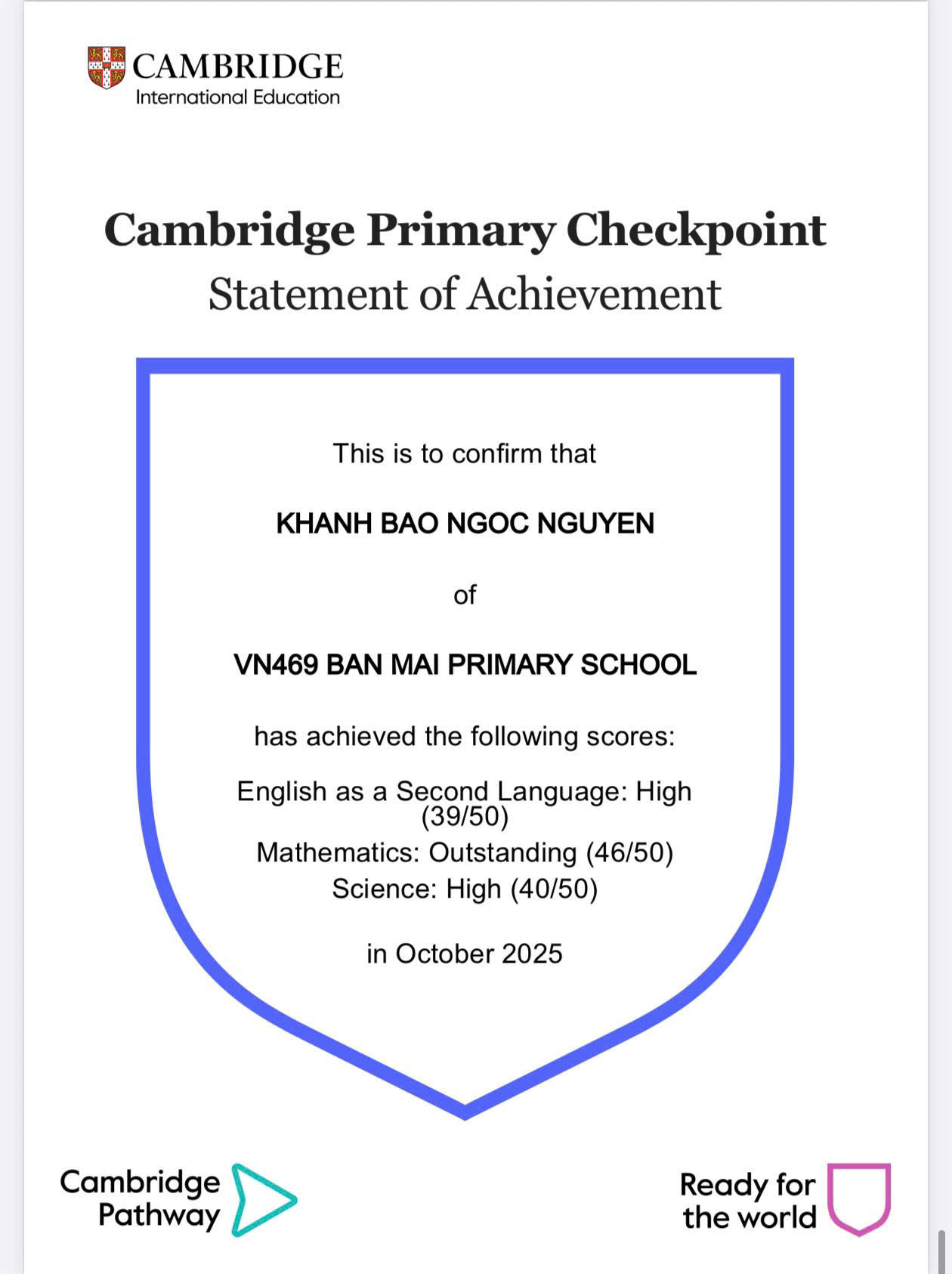 🎓 Notably, both Cambridge Checkpoint Primary and PET B1 CAMBRIDGE hold lifetime global validity, becoming valuable academic credentials that accompany students throughout their learning journey and international integration.