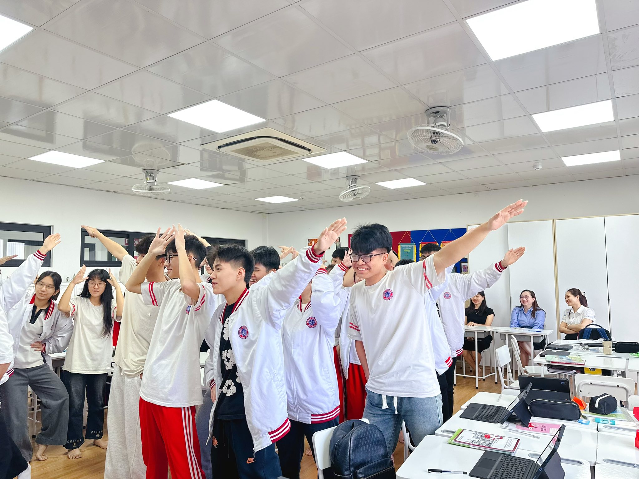 🧩 The lesson began with a fun “shape-posing” activity, creating a lively atmosphere and boosting students’ energy before diving into new content.