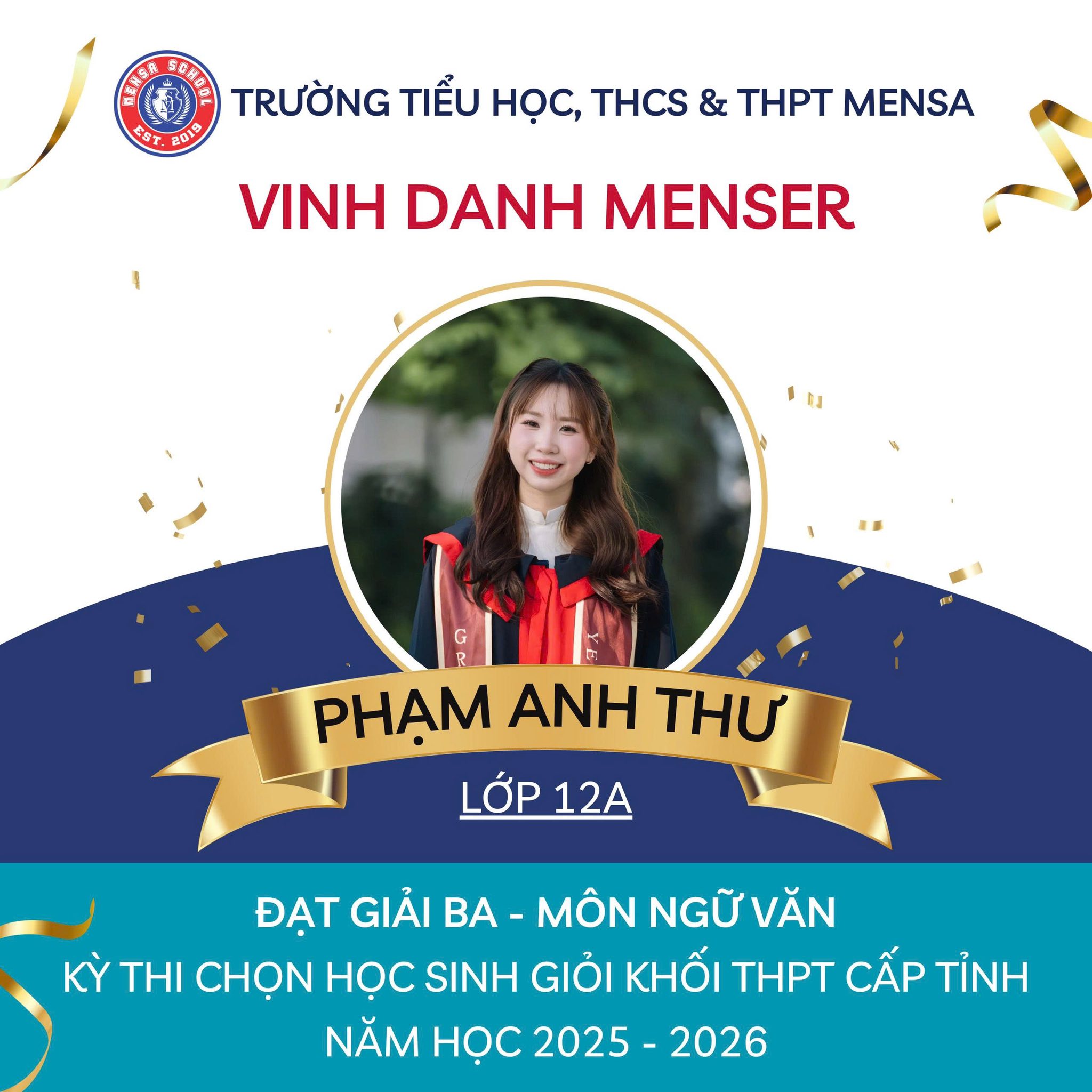 Xin chúc mừng các em học sinh và các thầy cô đã góp phần tạo nên niềm tự hào này. Mensa tin rằng, từ những dấu ấn hôm nay, tinh thần học tập nghiêm túc và khát vọng vươn xa sẽ còn tiếp tục lan tỏa mạnh mẽ trong những mùa thi sắp tới