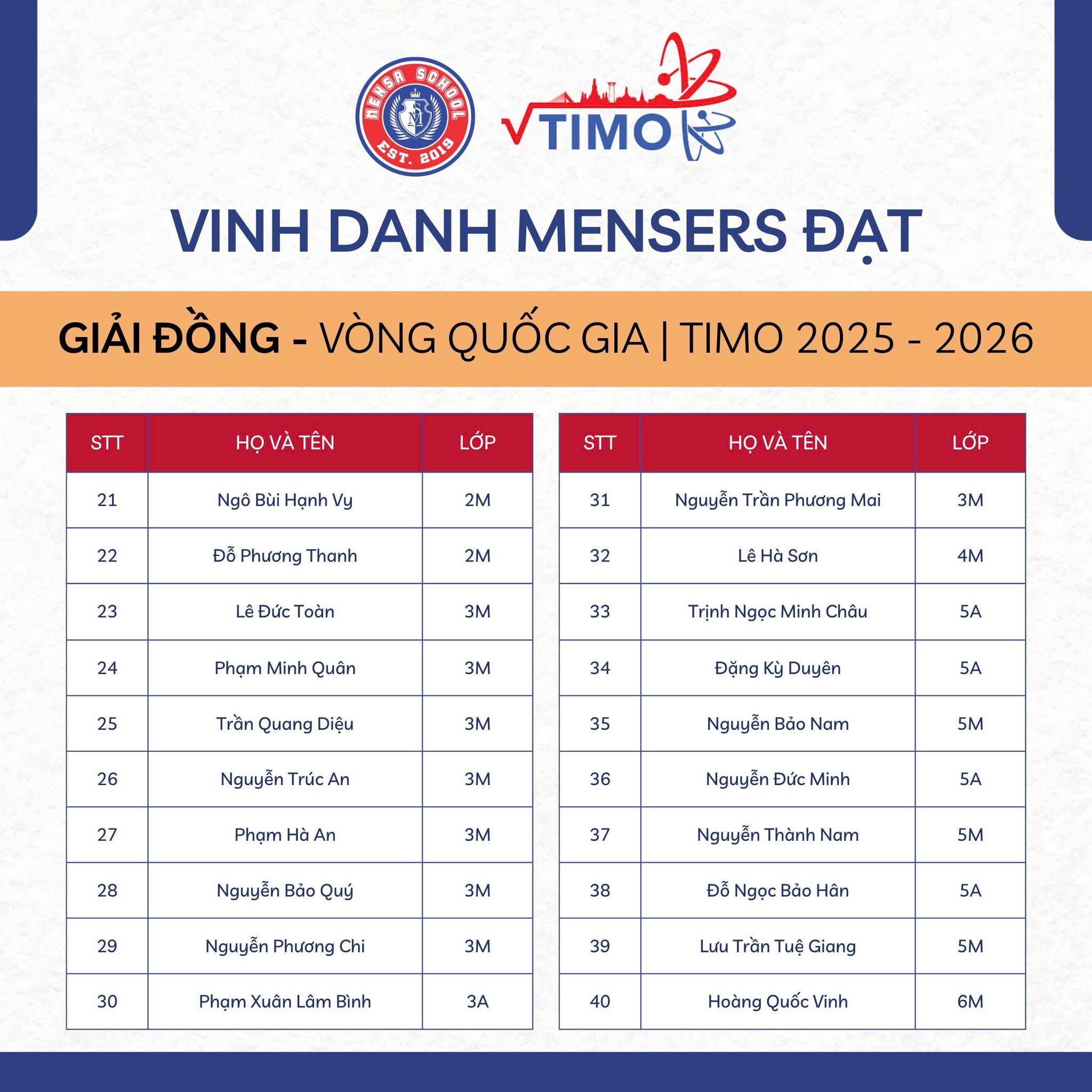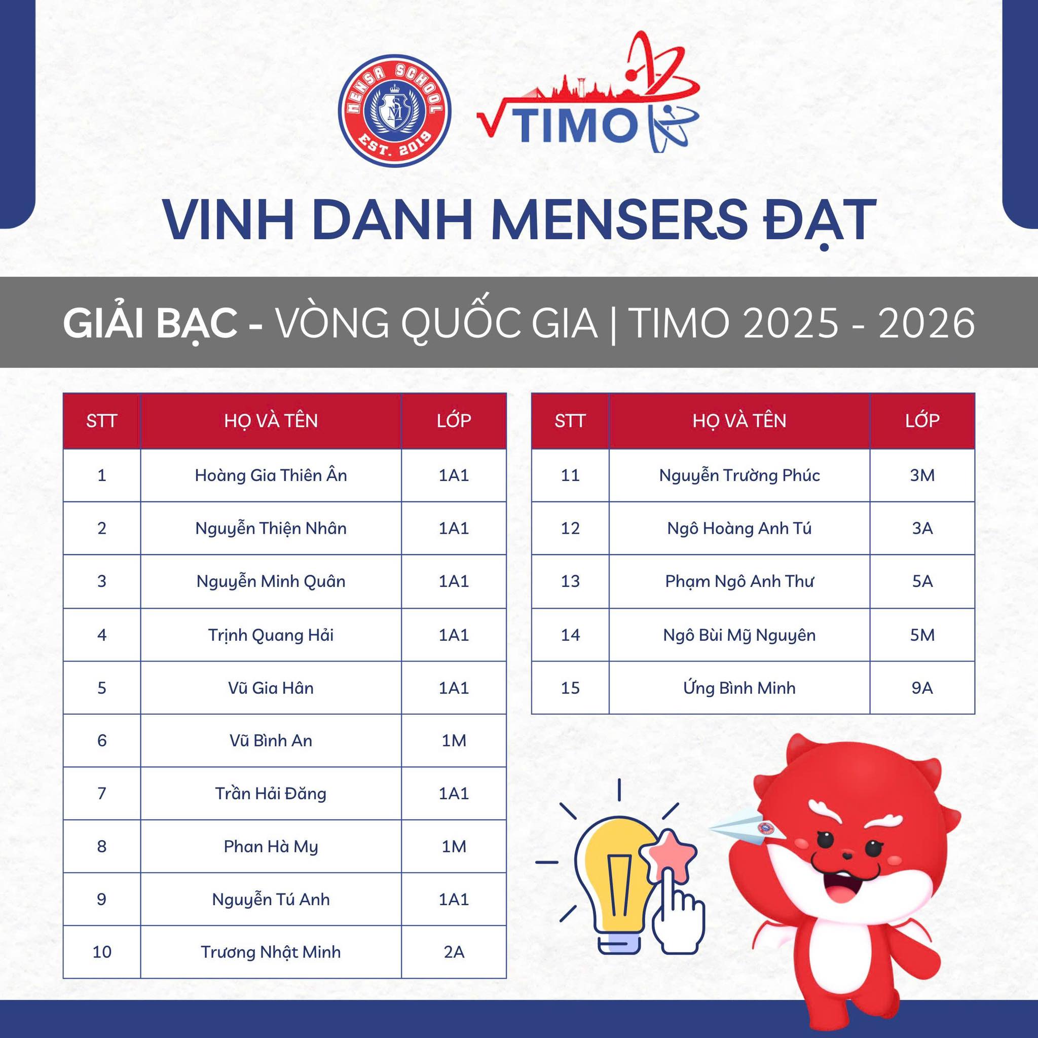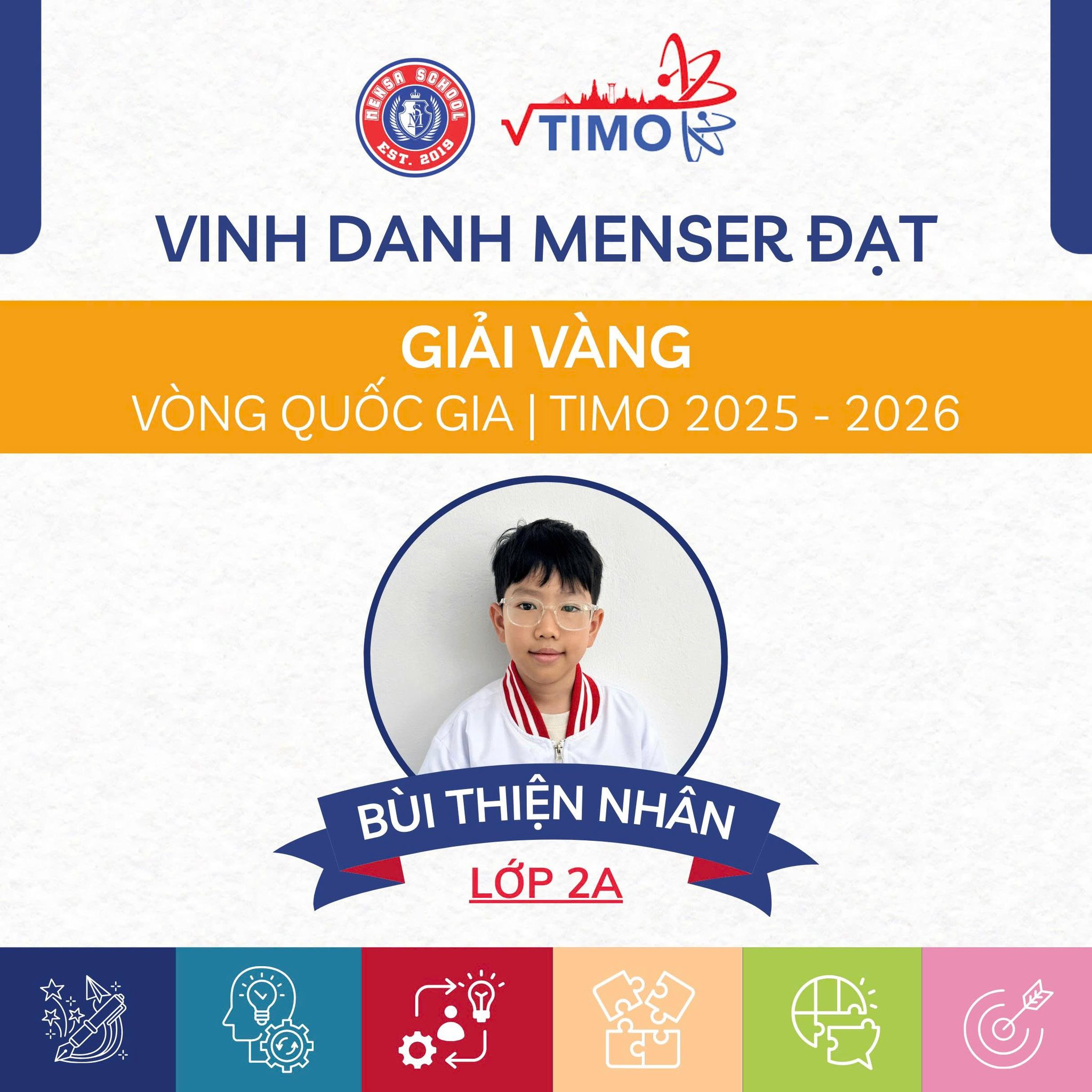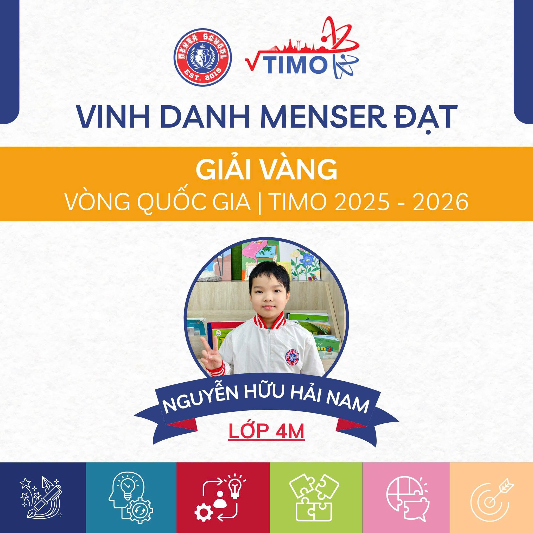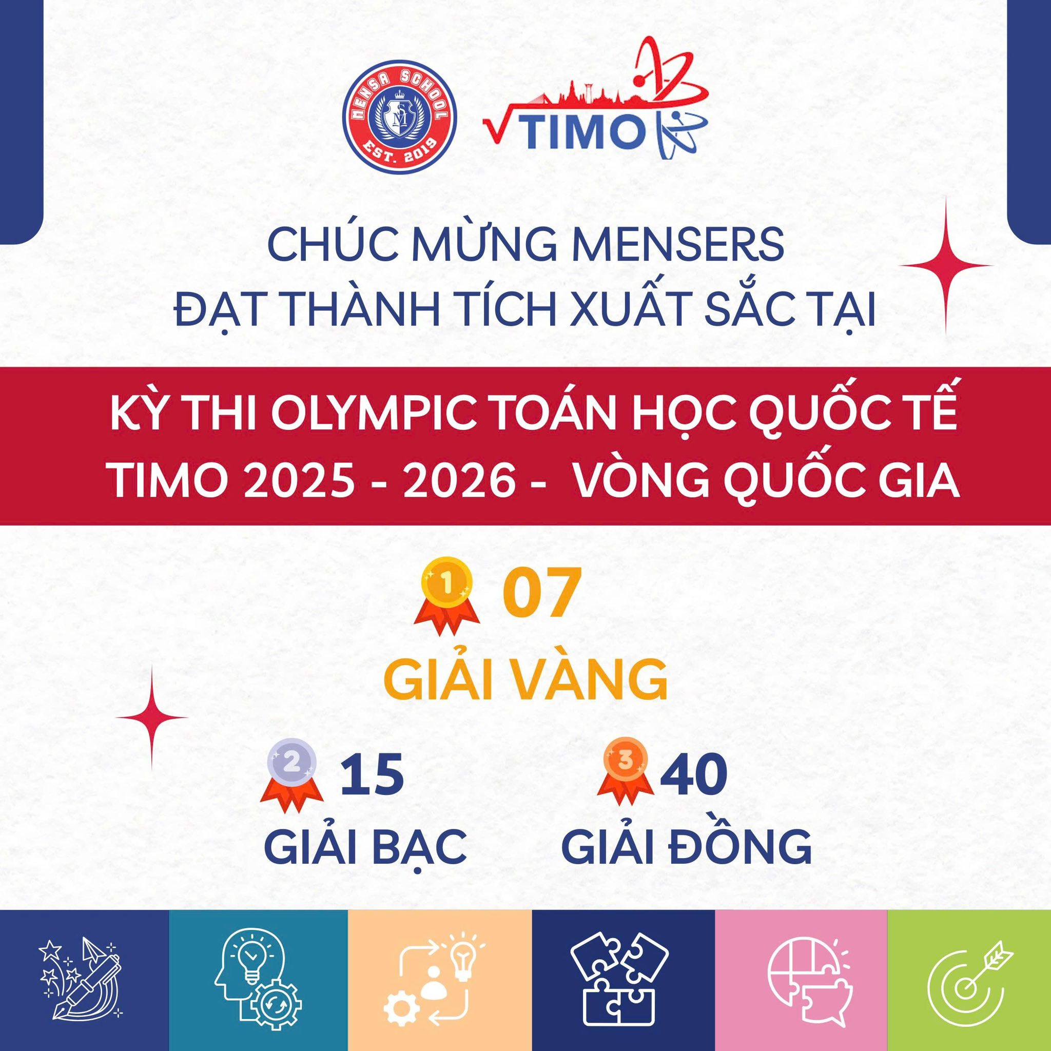 Mỗi tấm huy chương là thành quả của quá trình rèn luyện bền bỉ, niềm đam mê Toán học và nỗ lực không ngừng nghỉ, đồng thời khẳng định chất lượng đào tạo Toán học chuyên sâu, phương pháp học tập hiện đại cùng sự đồng hành tận tâm của đội ngũ giáo viên Mensa. Thành công hôm nay không chỉ là niềm vui của các em, mà còn là niềm tự hào chung của nhà trường, thầy cô và phụ huynh, tiếp thêm động lực để các Mensers bứt phá giới hạn – vươn tới những đỉnh cao tri thức mới trên hành trình phía trước.